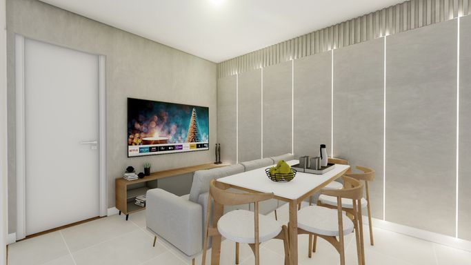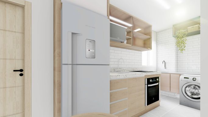 SALA, COZINHA E ÁREA DE SERVIÇO.
